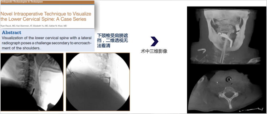 颈胸交界、复杂脊柱畸形、以及遇到腹内胀气等情况, 二维图像无法满足临床手术需求
